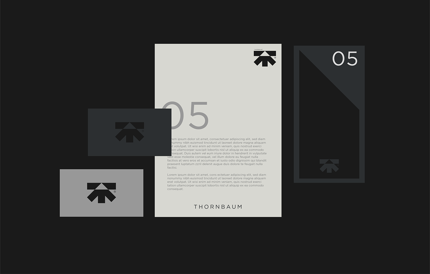 Gotham Standard字體的簡潔現(xiàn)代感與野獸派建筑的堅(jiān)固和簡約特質(zhì)不謀而合。字體的直線條和幾何形態(tài)與Thornbaum建筑作品的硬朗外形相契合,這使得品牌的視覺傳達(dá)更加直接、干練。